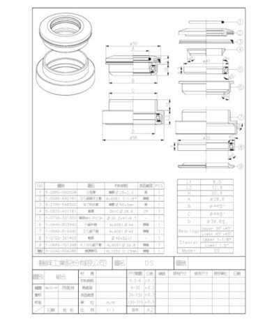 28.6-38.1 mm kahvlile, 30.2 x 41.8 x 7; 40 x 52 x 7; bearing O.D. 41/52 mm, crown cone 39.8 mm, height 5.5 mm, ACB Bearing 45° x 45°, keermeta, alumiiniumist, suletud laagrid