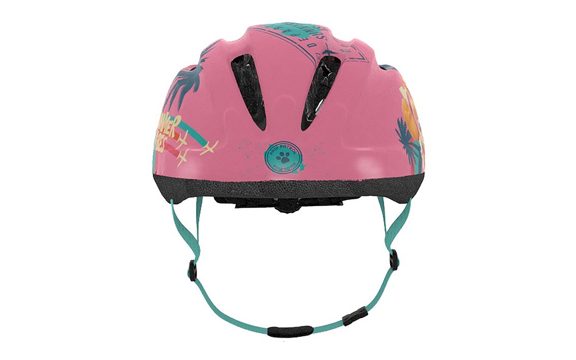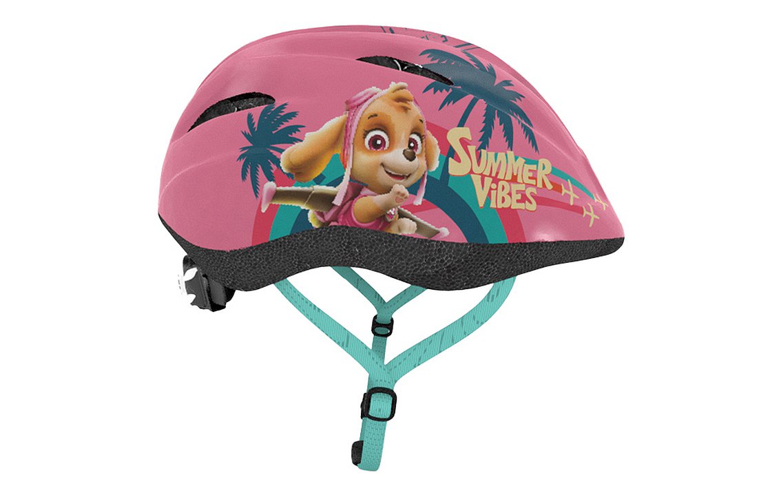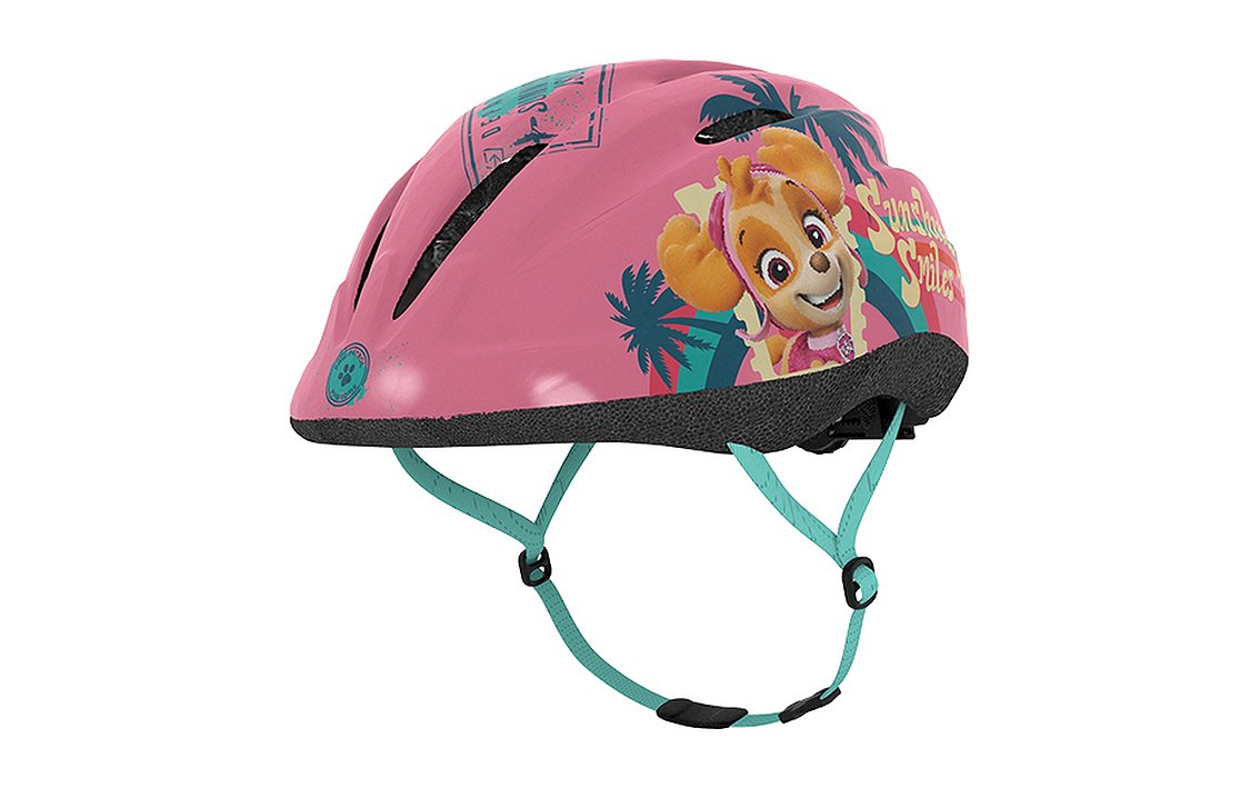 A safe, high-quality helmet designed for the youngest riders. Fits well when teaching a child to ride a bike and other vehicles. It will provide comfort when the child is travelling in child seat in the rear of your bike. Outside helmet is made of matte PVC and decorated with characters from Paw Patrol. Inside is made of the impact absorbing EPS black foam. Helmet is equipped with adjusting knob to adjust the helmet to the baby’s head, straps on both sides clipped under chin with a buckle with a soft pad. There are 12 ventilation holes in the shell of the helmet.