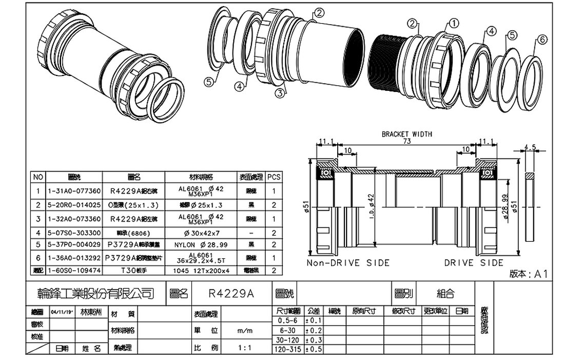 73 mm case width, 42 mm case diameter, 28.99 mm axle (SRAM DUB žvaigždžių blokams)
