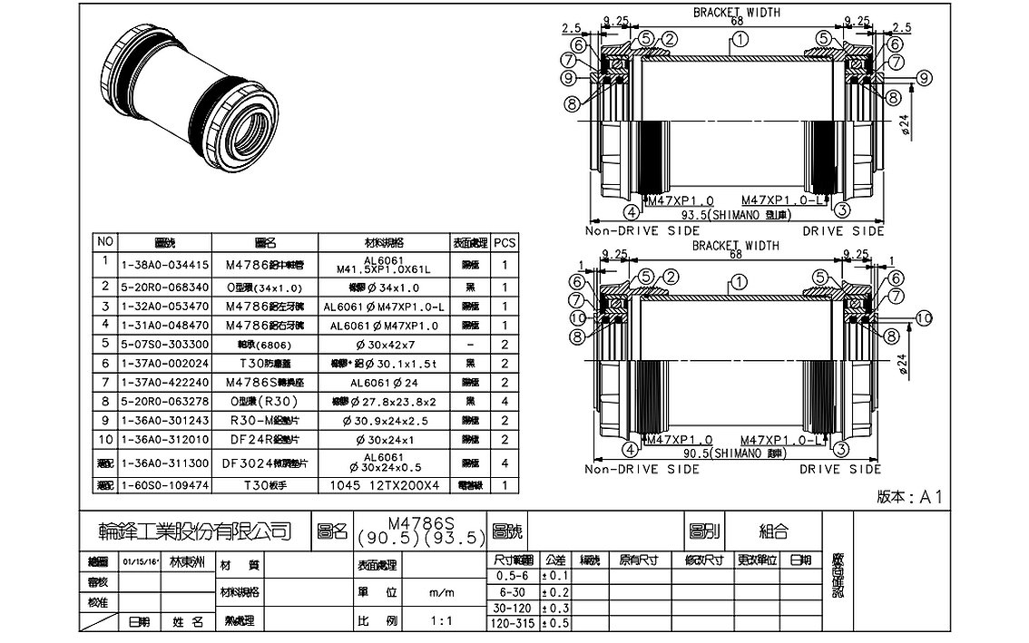 68/73 mm, 24 mm axle, M47 x P1.0