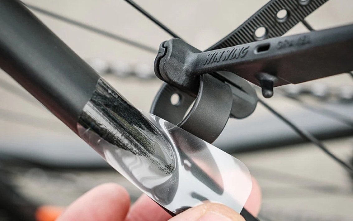 375 x 85 mm, kinnitatud istmetugedele, sobib rehvi laiusele kuni 35 mm, 64 g, paksusega 0,9 mm, materjalid: tera – PP, õõtshoova hoidikud – PA, rihm – TPU